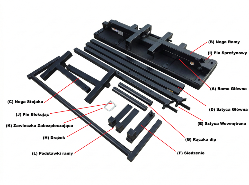 Procedura Zamawiania: W przypadku zużycia elementów (np. zagubienie pinu, przetarcie tapicerki, zgubienie zaślepki), należy zamawiać wyłącznie oryginalne części GYMSEE. W zamówieniu prosimy podać: